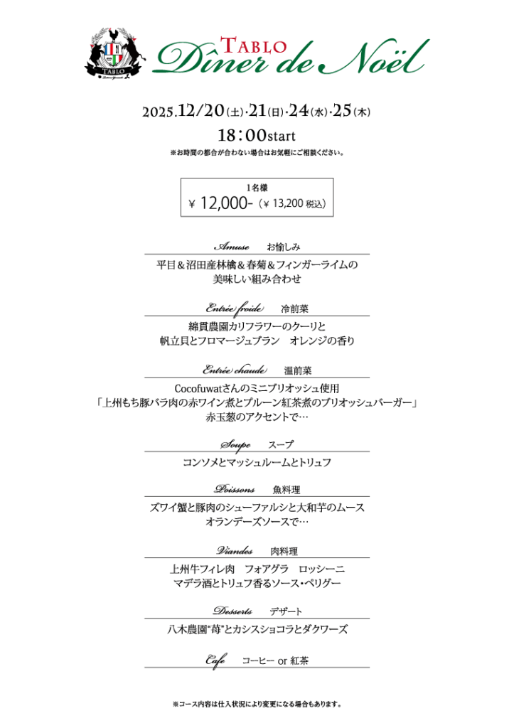 TABLOのクリスマスコース🎅